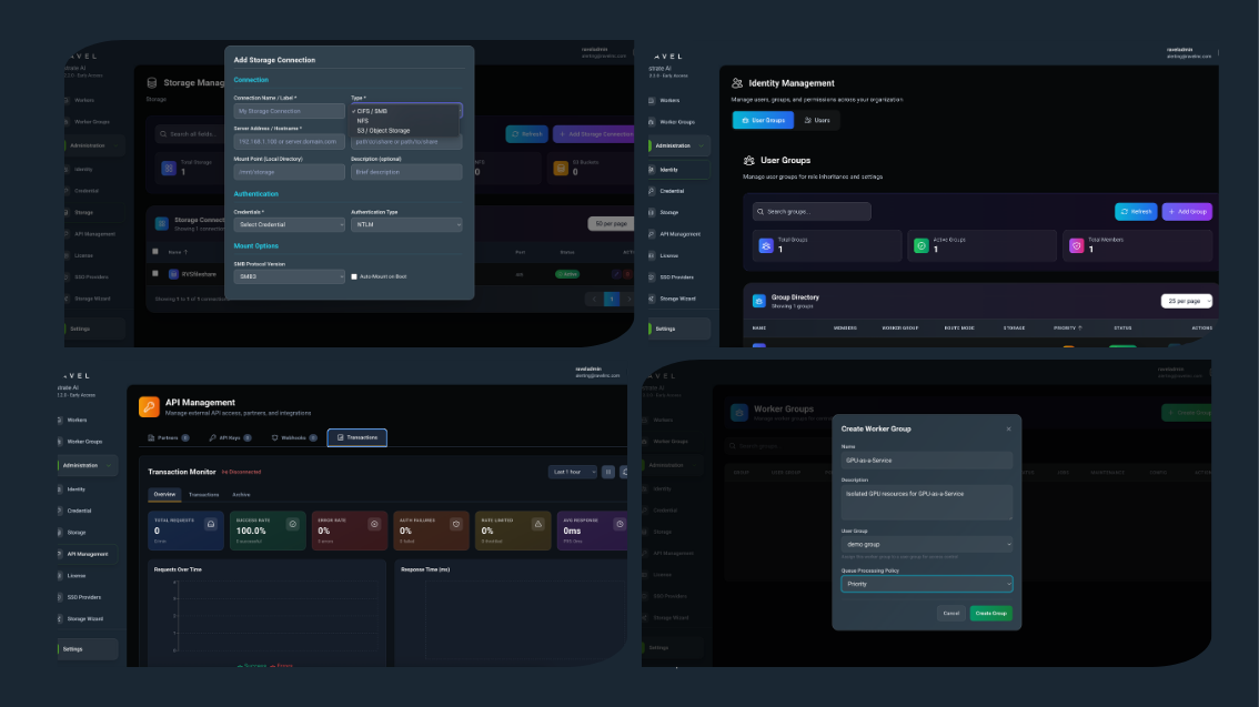 User Groups with granular policy controls including: authentication rules, storage connections, queue permissions and seamless mapping to worker groups. Brings order to complex AI environments. Enforces policy by team, isolates workloads with precision, and manages access at scale — without adding operational friction.